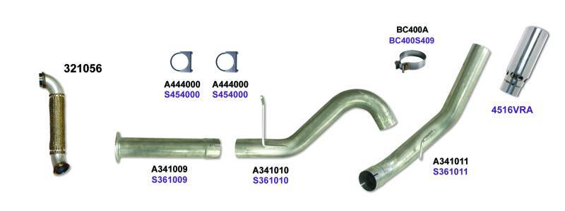 Exhaust System Kit, 2007.5-2010 CHEVY/GMC 6.6L LMM DURAMAX 2500/3500 (ALL CAB AND BED LENGHTS)-4in. STAINLESS