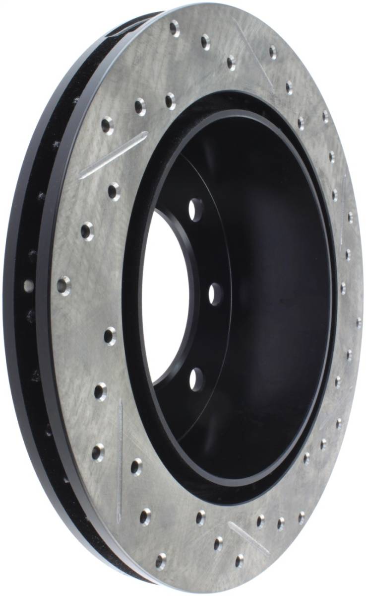 Premium e-coated rotor with advanced metallurgy that greatly reduces pad squeal. Especially effective with higher friction, European style brake pad compounds. Drilled & Slotted for increased bite, improved looks and better performance