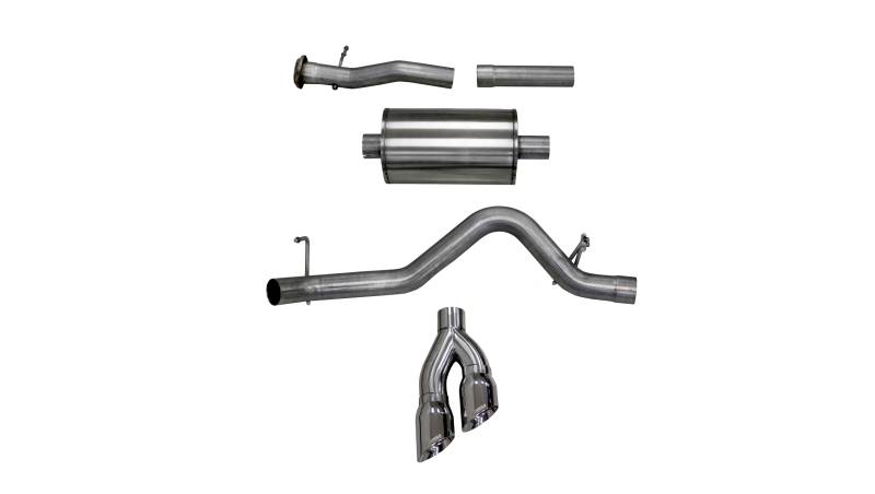 Sport Cat-Back Exhaust System; Single Side Exit; 3.0 in. Dia.; Incl. Muffler/Head Pipe Assemblies/Tailpipe/Adapter Pipe/Hardware/Twin 4.0 in. Side Swept Polished Tips;