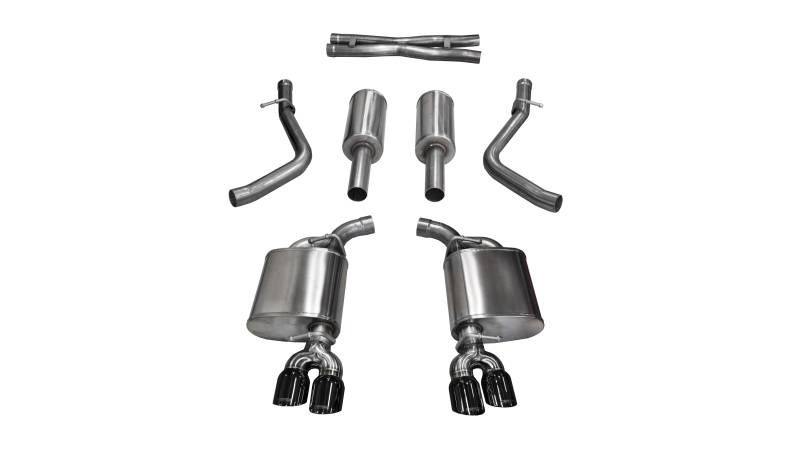 Sport Cat-Back Exhaust System; Dual Rear Exit; 2.5 in. Dia.; Incl. Sport Tunnel Mufflers/Pipes/Clamps/Dual 3.5 in. Black Pro-Series Tips;