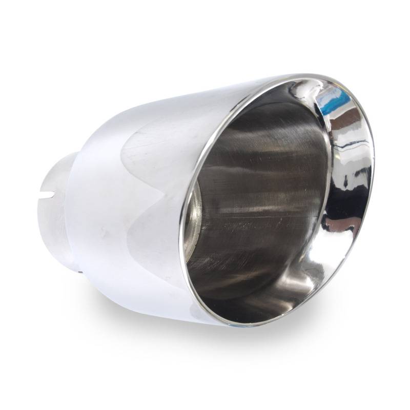 Polished double wall tip, made of 304 stainless steel, 20 degree Conical slash cut tip. 4" OD body with a 3" ID thru, 2-1/2" ID inlet with a 1-1/4" stub and a overall length of 6-1/4".
