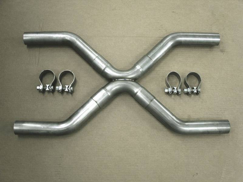 Do it yourself 2" X-style universal crossover kit, it includes 1) X-pipe, that is expanded on all four sides also 4) 45 degree bends, and 4) Clamps to tighten everything up.