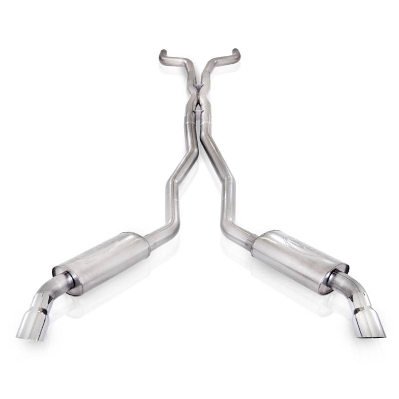 2010-15 Camaro 6.2L 304 SS CNC mandrel bent 3" dual exhaust system with x-pipe, dual turbo chambered mufflers, mirror polished stainless steel tips, and all hangers and clamps for easy installation.