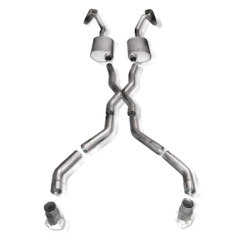 1967-69 Chevy, Camaro CNC mandrel bent 2-1/2" Exhaust 304 stainless. Designed to fit Aftermarket headers with 3" 3 bolt flanges. X crossover with dual turbo mufflers. Specifically designed for Air Ride Air, bar Rear Suspension.
