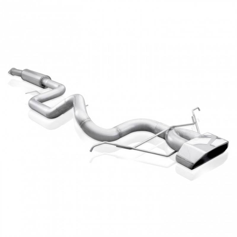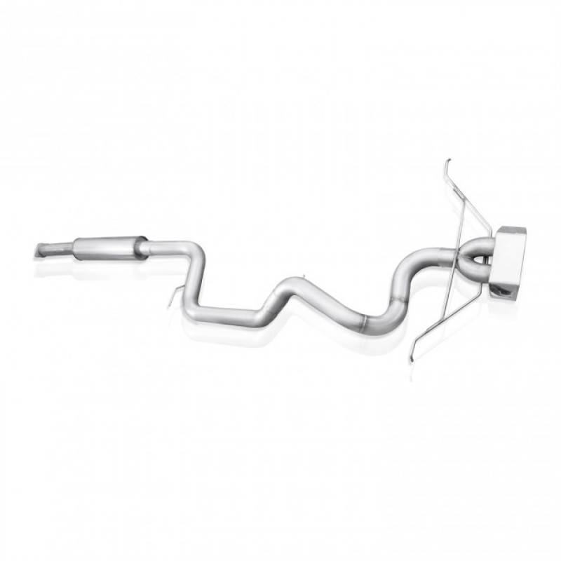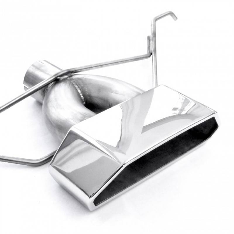 2013-17 Ford Focus ST 2.0L 304 SS 3" Catback Exhaust with vintage round muffler and a laser cut, mirror polished 304 SS wide tip. Includes hangers and clamps, and adapters and mates to the factory connection point.