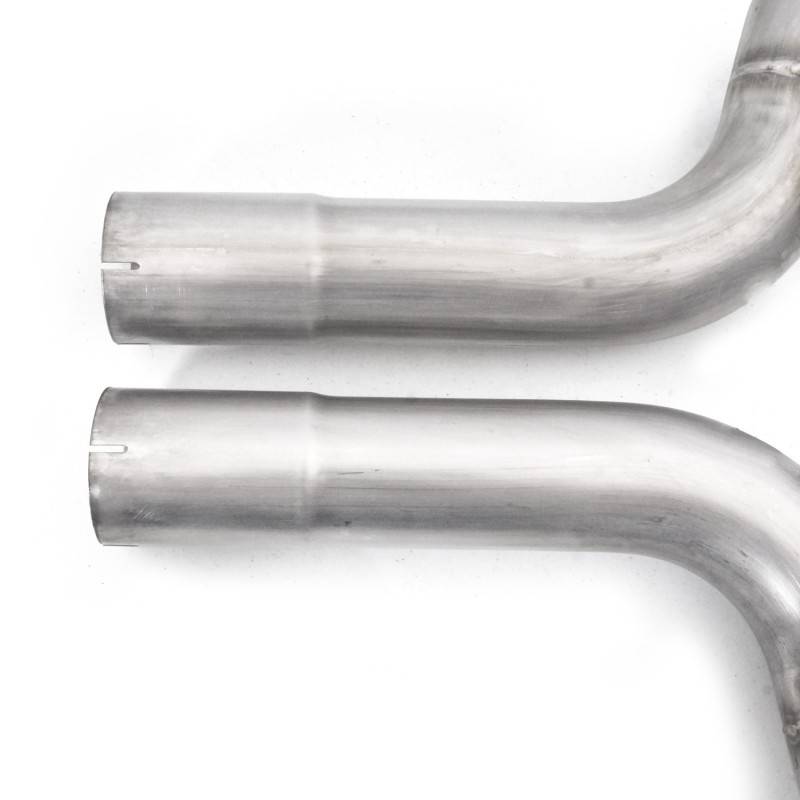 2015-18 Mustang GT 5.2L long-tube headers. Unholy Union. Starting with our durable 3/8" thick flanges into 1-7/8" diameter primaries, 3" slip-fit collectors with merge spike, then fitting into 3" High-flow cats.