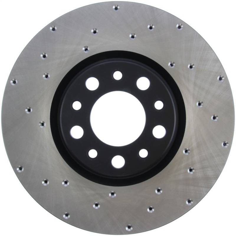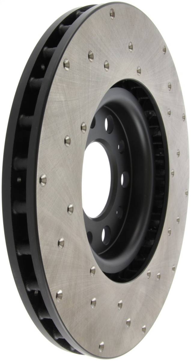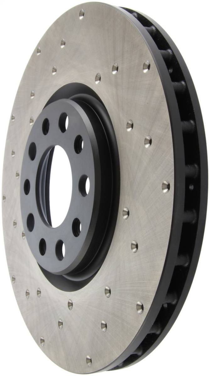 Premium e-coated rotor with advanced metallurgy that greatly reduces pad squeal. Especially effective with higher friction, European style brake pad compounds. Drilled for increased bite, improved looks and better performance