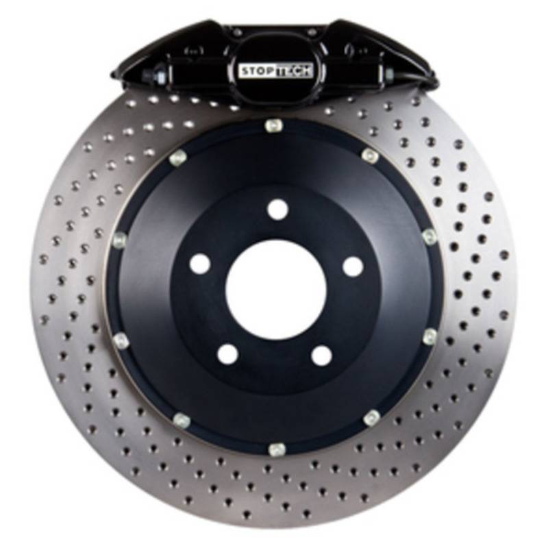 StopTech Big Brake Kit; Black Caliper, Drilled Two-Piece Rotor, Rear