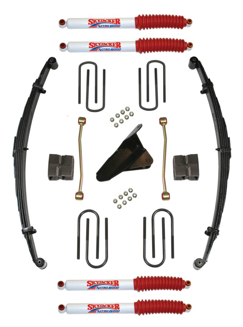 Pallet Kit; 4 in. Lift; Incl. Front Leaf Springs; Track Bar Drop Brackets; Rear Blocks And U-Bolts; Nitro Shocks; Sway Bar Endlinks; Pitman Arm; Hardware;