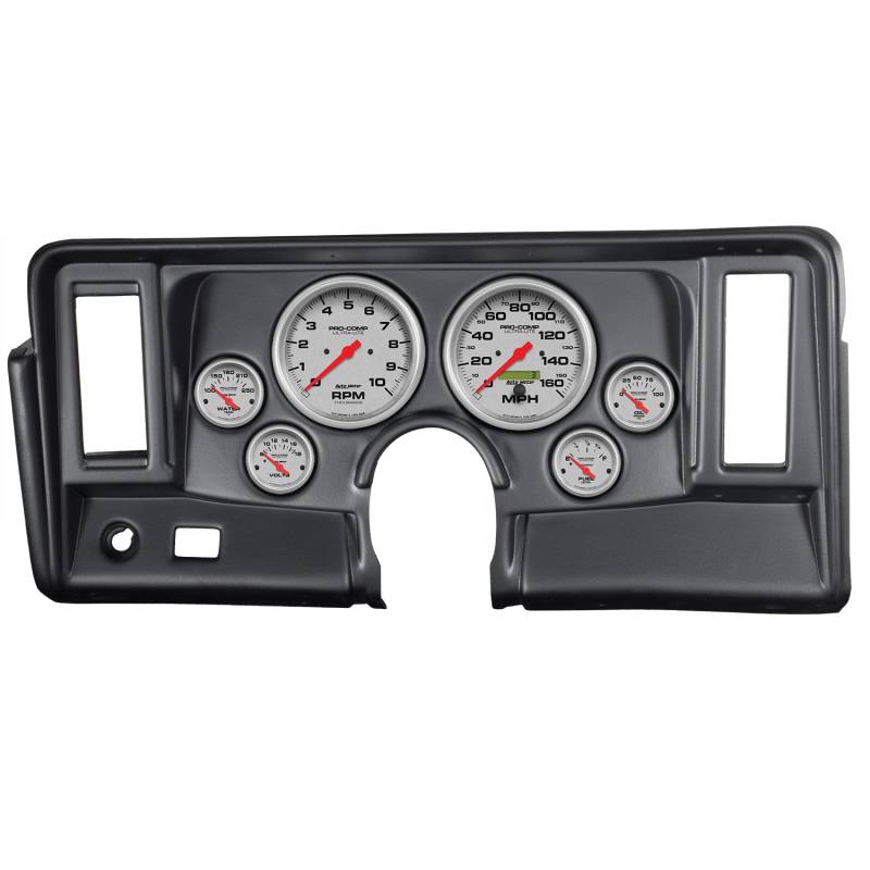 Includes 5" Ultra Lite electric speedometer & tachometer and 2-1/16" electric fuel level (0/90 ohm), water temperature, oil pressure, and voltmeter