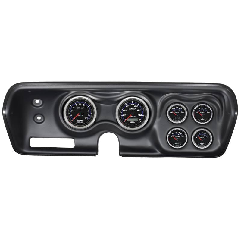 Includes 3-3/8" Cobalt electric speedometer & tachometer and 2-1/16" electric fuel level (73/10 ohm, non-linear), water temperature, oil pressure, and voltmeter