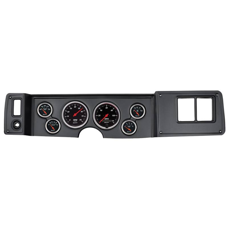 Includes 3-3/8" Designer Black electric speedometer & tachometer and 2-1/16" electric fuel level (0/90 ohm), water temperature, oil pressure, and voltmeter
