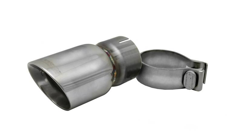 Exhaust Tip Kit; Universal; Single 3 in. Angle Cut; Round; No Resonator; 6.8 in. Overall Length; 2.5 in. Dia. Pipe; Slash Cut; Clamp Incl.; Polished;