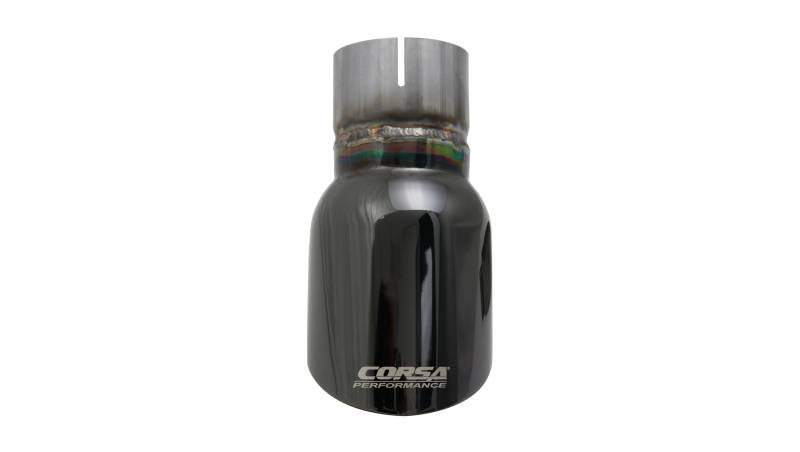 Exhaust Tip Kit; Universal; Single 3.5 in. Angle Cut; Round; No Resonator; 7.5 in. Overall Length; 2.5 in. Dia. Pipe; Slash Cut; Clamp Incl.; Black PVD;
