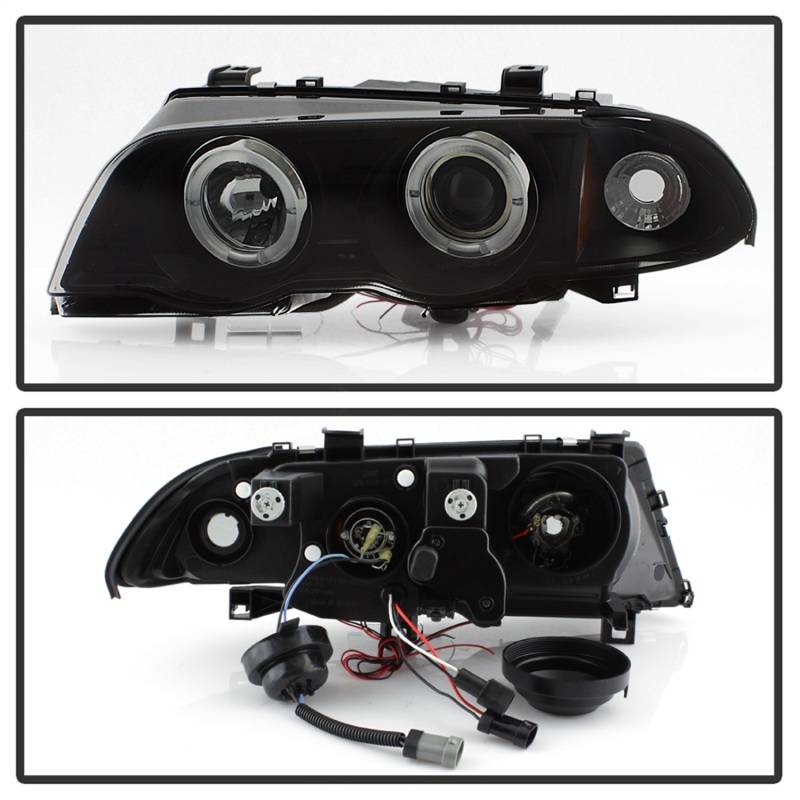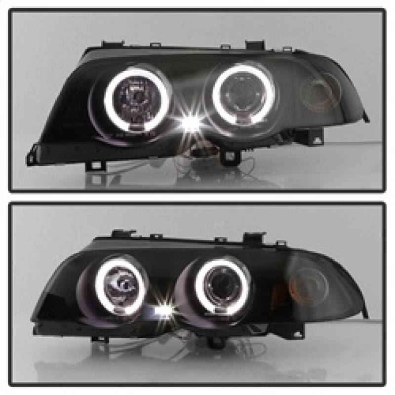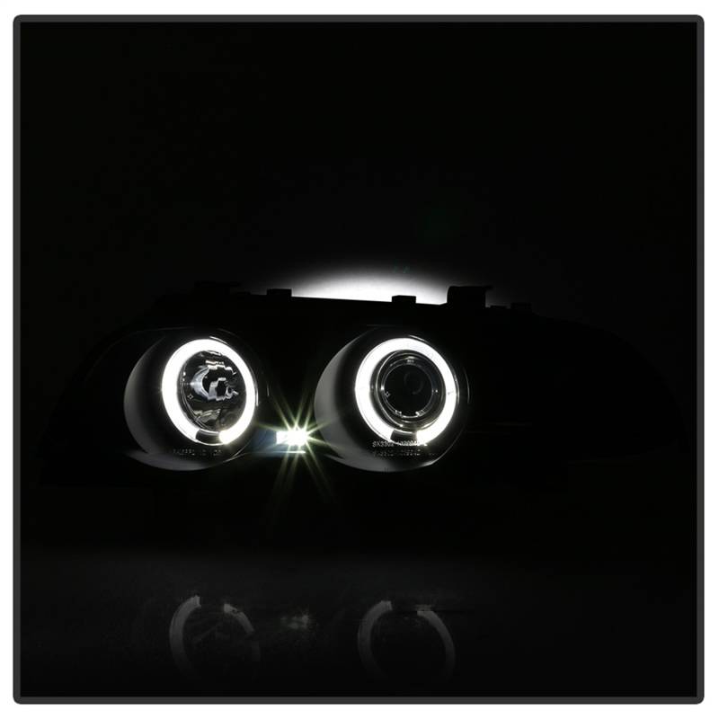 (Spyder) BMW E46 3-Series 99-01 4DR Projector Headlights 1PC-LED Halo-Amber Reflector-Black Smoke-High H1 (Included)-Low H1 (Included)