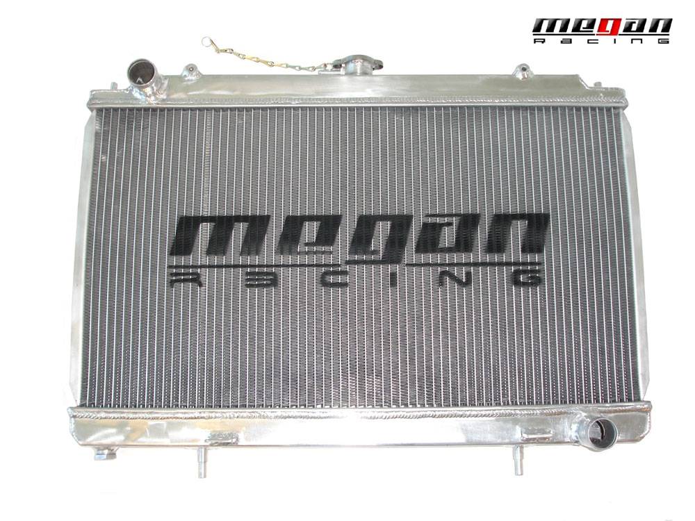 Megan Racing high performance aluminum radiators are a great upgrade over your stock radiator, offering a cost efficient way to reduce the temperature of your cars engine. This replacement will help reduce temperatures in all driving conditions, however it is most notable during race, drifting, drag, or other competitive and hard driving situations. A temperature difference of up to 20 degrees or more can be achieved by using this Megan Racing aluminum radiator.