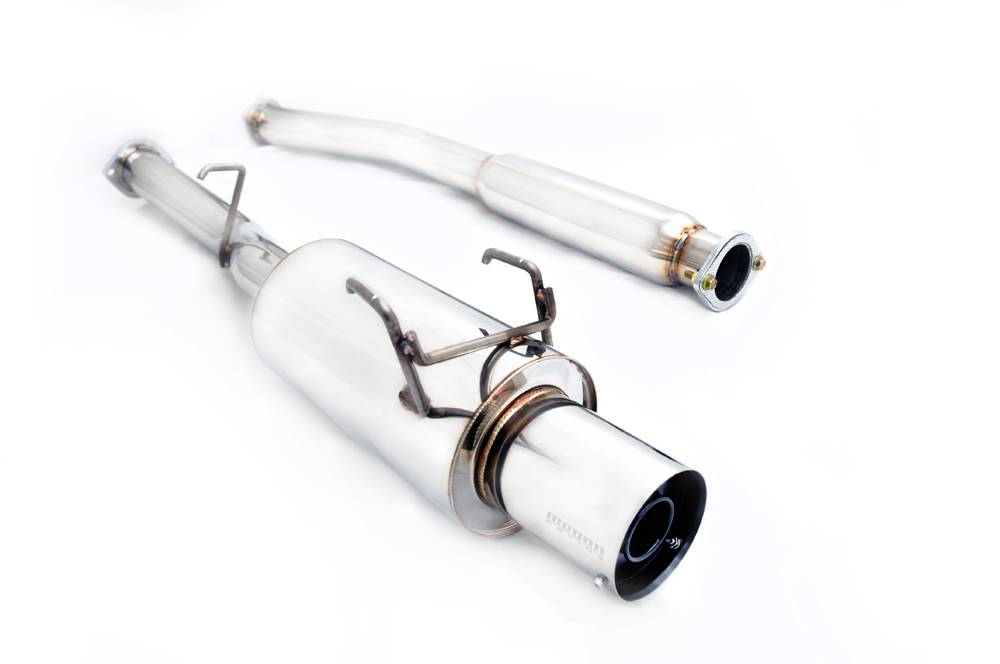 Megan Racing Drift Spec Cat-Back exhaust systems were designed to replace your stock exhaust system from the catalytic converter back. Utilizing a straight-through design, mandrel bends, and CNC machined flanges, this Cat-Back system will improve your cars horsepower, torque, and overall performance. Additionally featuring a tip that is designed to increase the scavenging effect to further improve your exhaust’s performance. Made with SUS-304 stainless steel, this high quality Cat-Back system will improve the exhaust flow of your car, granting a deeper and more aggressive tone while maintaining an awesome, stylish look.