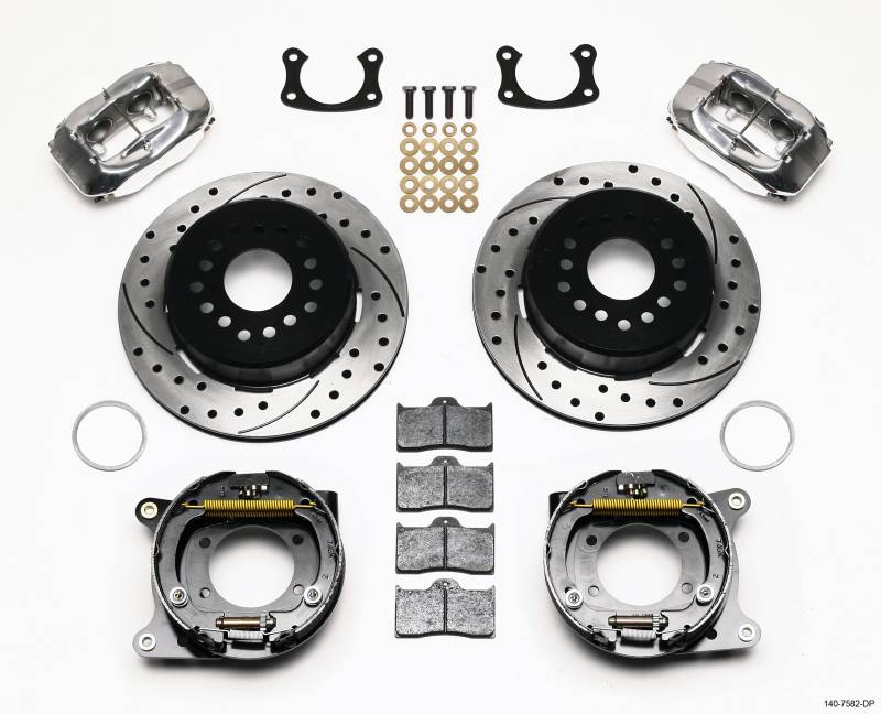 KIT,REAR,DISC/DRUM,BIG FORD,NEW STYLE 2.36 OFFSET,1PC .81 ROTOR,DRILLED,POLISH