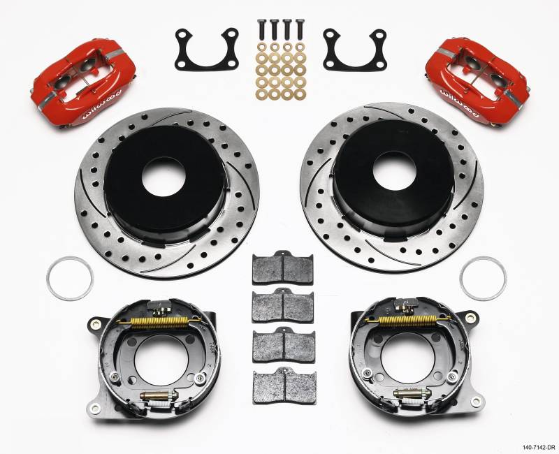 KIT,REAR,DISC/DRUM,BIG FORD,2.36 OFFSET CURRIE,1PC .81 ROTOR,DRILLED,RED