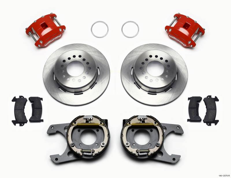 KIT,REAR,DISC/DRUM,12 BOLT,CHEVY,2.75/ 2.81 OFF,D154,1PC ROTOR,STAGGERED MT,RED