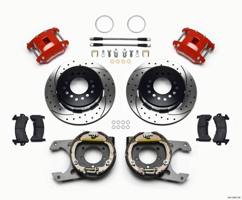 KIT,REAR,DISC/DRUM,JEEP DANA 35,2.56 OFFSET,D154,1PC ROTOR,DRILLED,RED