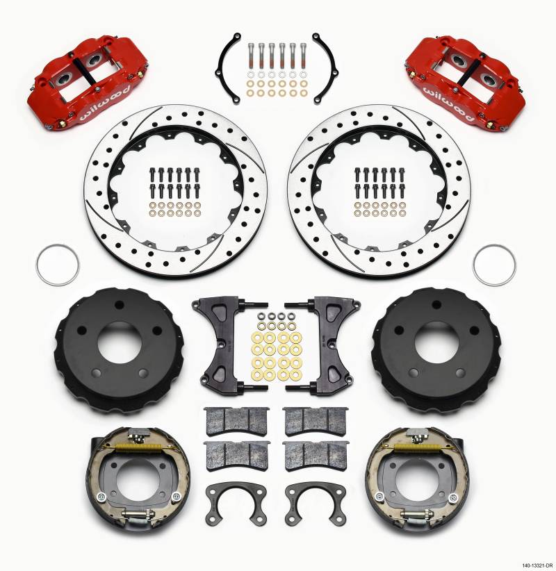 KIT,REAR,DISC/DRUM,SMALL FORD,2.36 OFF FNSL4R,5x5.50 BC,12.88 ROTOR,DRILLED,RED