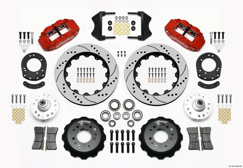 KIT,FRONT,MUSTANG 65-69,V8 DRUM SPINDLE 14.00 ROTOR,DRILLED,RED