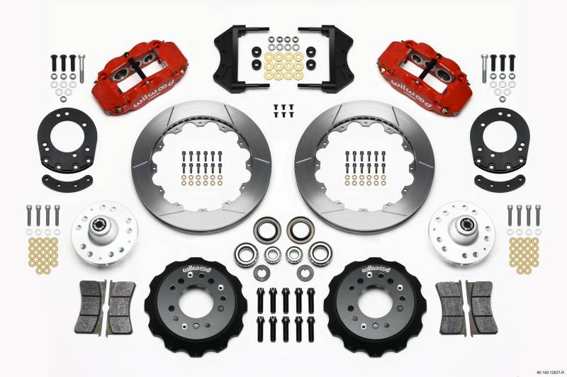KIT,FRONT,MUSTANG 65-69,V8 DRUM SPINDLE 12.88 ROTOR,RED