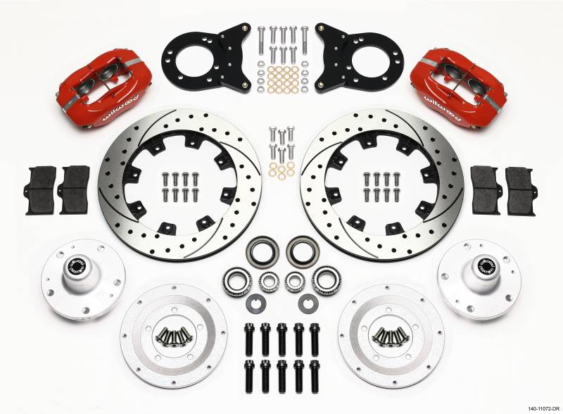 KIT,PRO-STREET,FRONT,MUSTANG,65-69,HD FORGED HUB,12.19,VENTED,DRILLED,RED