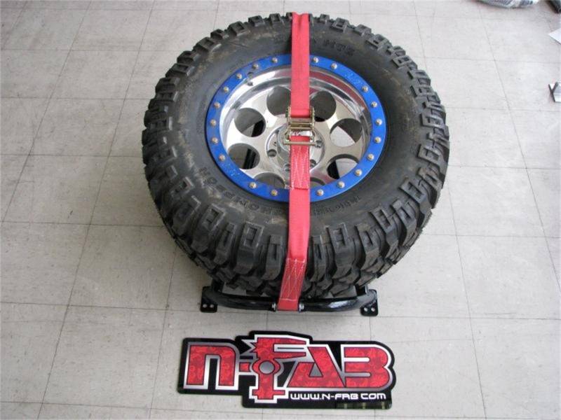 Gloss Black Bed Mounted Tire Carrier w/ Red Strap