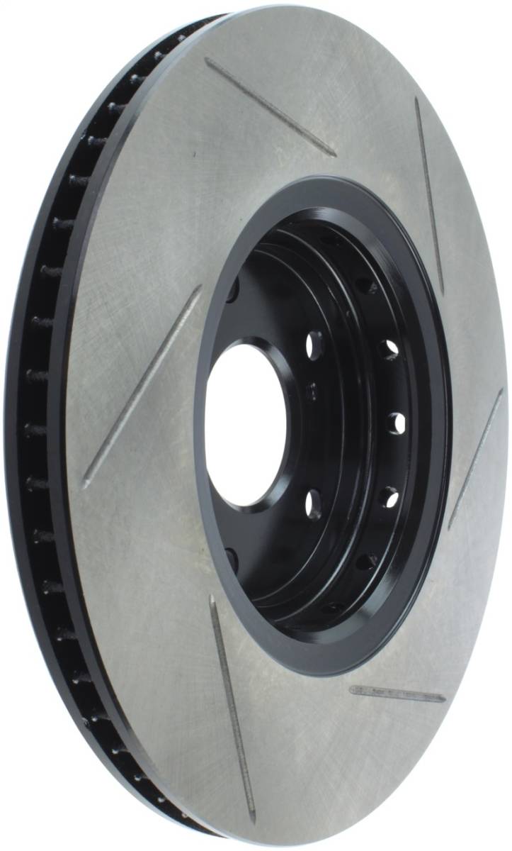 Premium e-coated rotor with advanced metallurgy that greatly reduces pad squeal. Especially effective with higher friction, European style brake pad compounds. Slotted for increased bite, improved looks and better performance